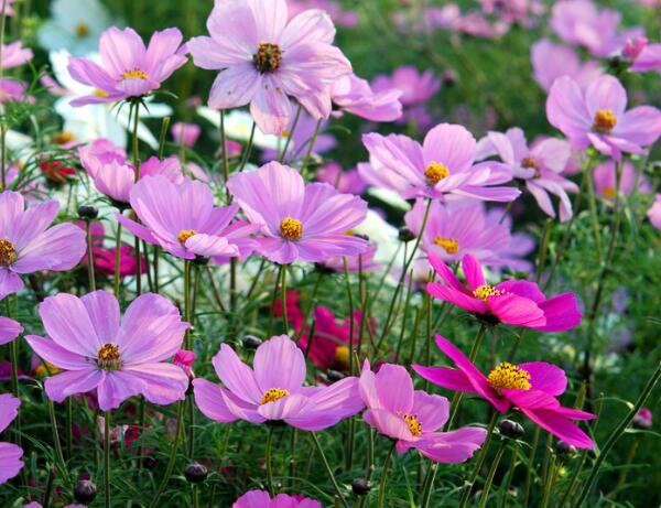 種植格桑花比較簡單,在播種之前先把土壤細翻一遍,適當鋪上一些底肥,如果土壤比較干燥的話要先澆水,等水滲透以后再播種,通常都是采用撒播的方式種植,把種子均勻的撒在泥土里,蓋一層稀土。大約一周左右就會發芽,長出幼苗。