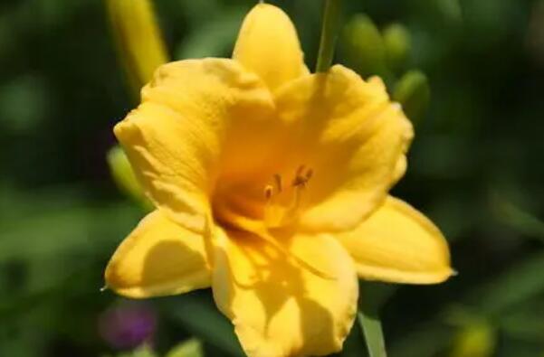 萱草的花色是橘黃色,而且其花形如漏斗狀;黃花菜的花朵比較長,花瓣也比較窄一些,花色是嫩黃色的。